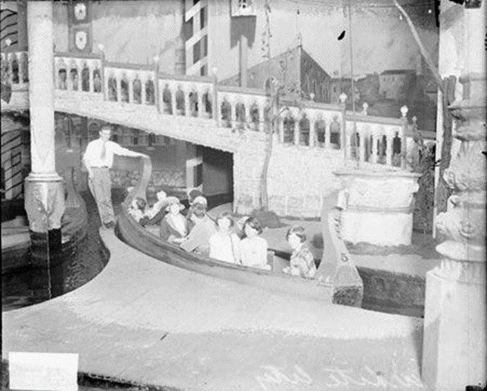 Like 1893, there were gondolas, but inside a Beautiful Venice experience, a separate concession. [1920s photo (Chicago History Museum)]