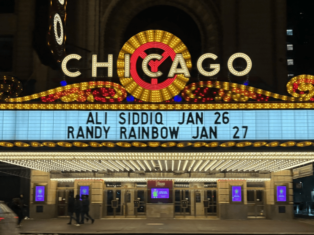 It’s even in the center of the iconic Chicago Theater neon sign.