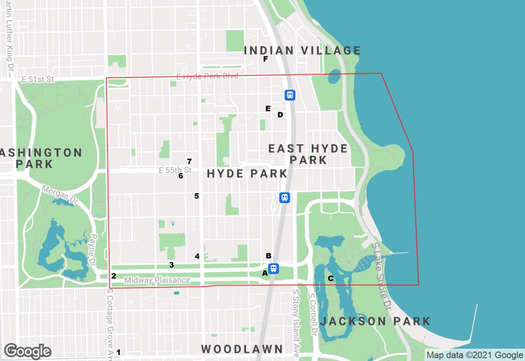 From 63rd and Cottage, go north on Cottage Grove to the Midway Plaisance and head east